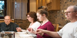 Posted on April 5, 2015 Posted By: FaithIsland Categories: Big generation family having dinner together and holding each other by hands while praying. Focus on the young girl, natural light used. Horizontal composition; shallow depth of field